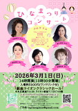 ニューイヤーコンサート ソプラノ:浅田眞理子 坂部愛 中原沙織 テノール:勝又康介 澤崎一了 飯塚学 村松恒矢 ピアノ:河崎恵 堀野純子 |